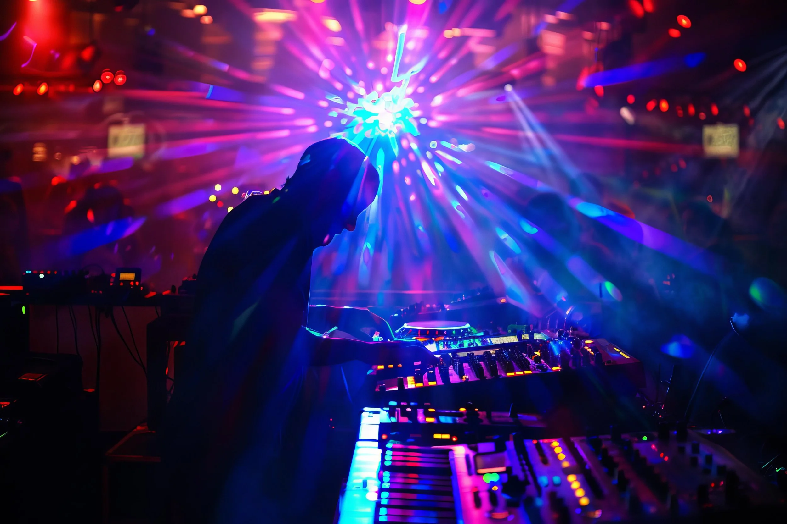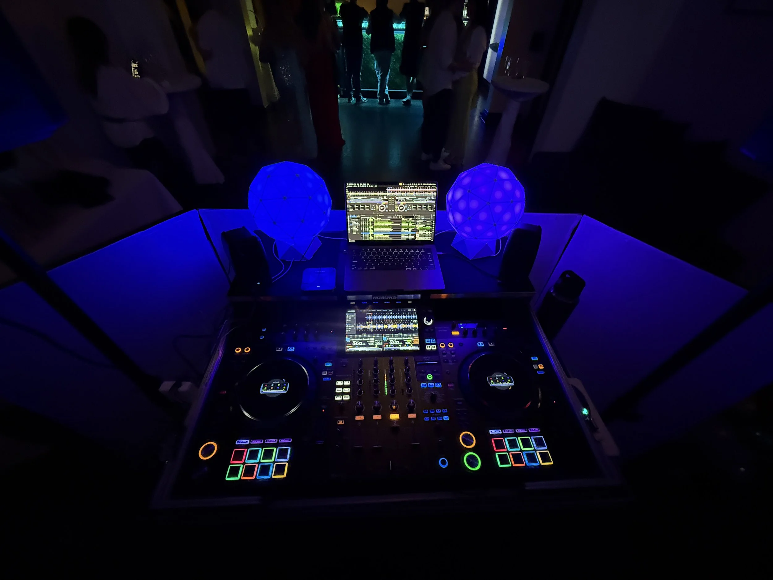 Pro DJ Deck (XDJ-AZ), lighting console (Magic Q), Pangolin Beyond laser control hardware/software.